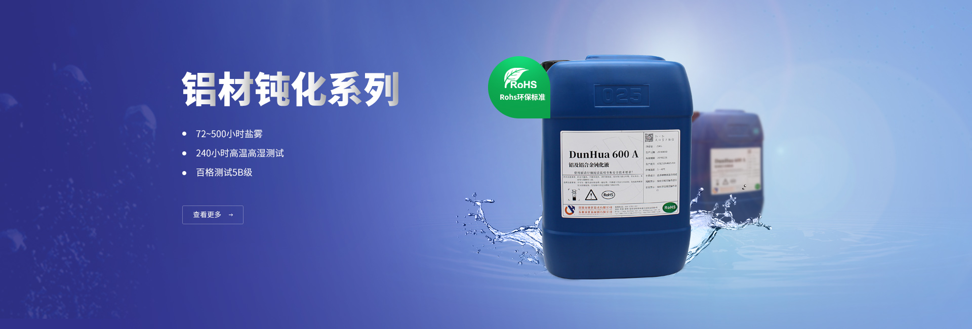 適用于壓鑄鋁、型材鋁及鋁合金產品的三價鉻鈍化。以三價鉻為基礎的濃縮液體,防腐蝕性能優于六價鉻鈍化工藝??勺鳛殛枠O氧化后的后處理,提高其抗氧化能力。