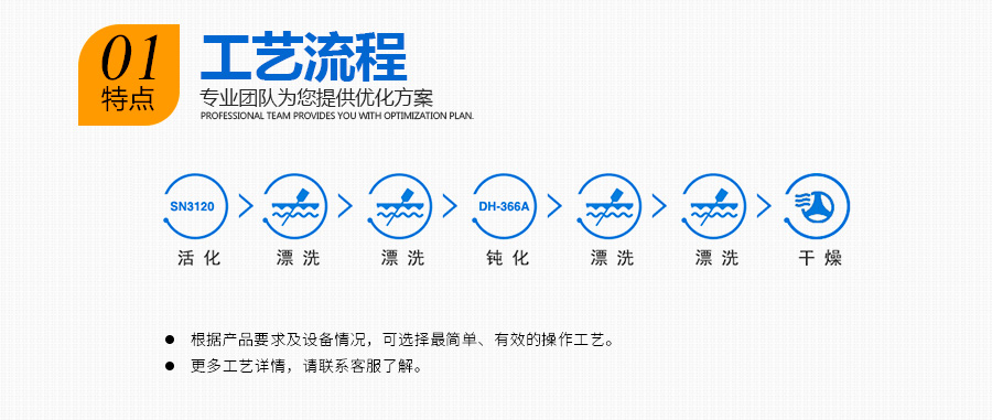 SanNy3120 使用建議 操作方式 浸沒 使用濃度 3~10% Vol 處理溫度 常溫~45℃ 處理時間 3~10min 適用范圍 銅、鋁、鋼、鐵鋅合金等產品除蠟清洗