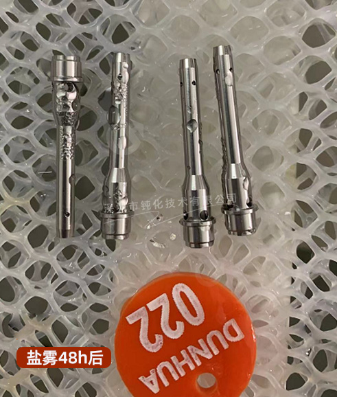可以很清晰的看到我們清洗鈍化之后可以很好的去除機加產生的油污,并使得工件更加的光亮,鹽霧和外觀都受到客戶的一致好評,在中性鹽霧環境中48小時后無銹點,達到10級防銹,并且處理過后的工件也通過了FDA認證,客戶的產品在市場中更具競爭力。