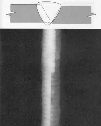 (3)未焊透有底片上處于焊縫根部的投影位置,一般在焊縫中部,因透照偏、焊偏等原因也可能偏像一側。