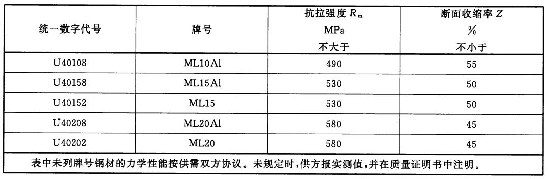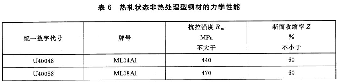 2)非調質型冷鐓和冷擠壓用鋼,熱軋狀態交貨非調質型鋼材的力學性能應符合以下表格規定。