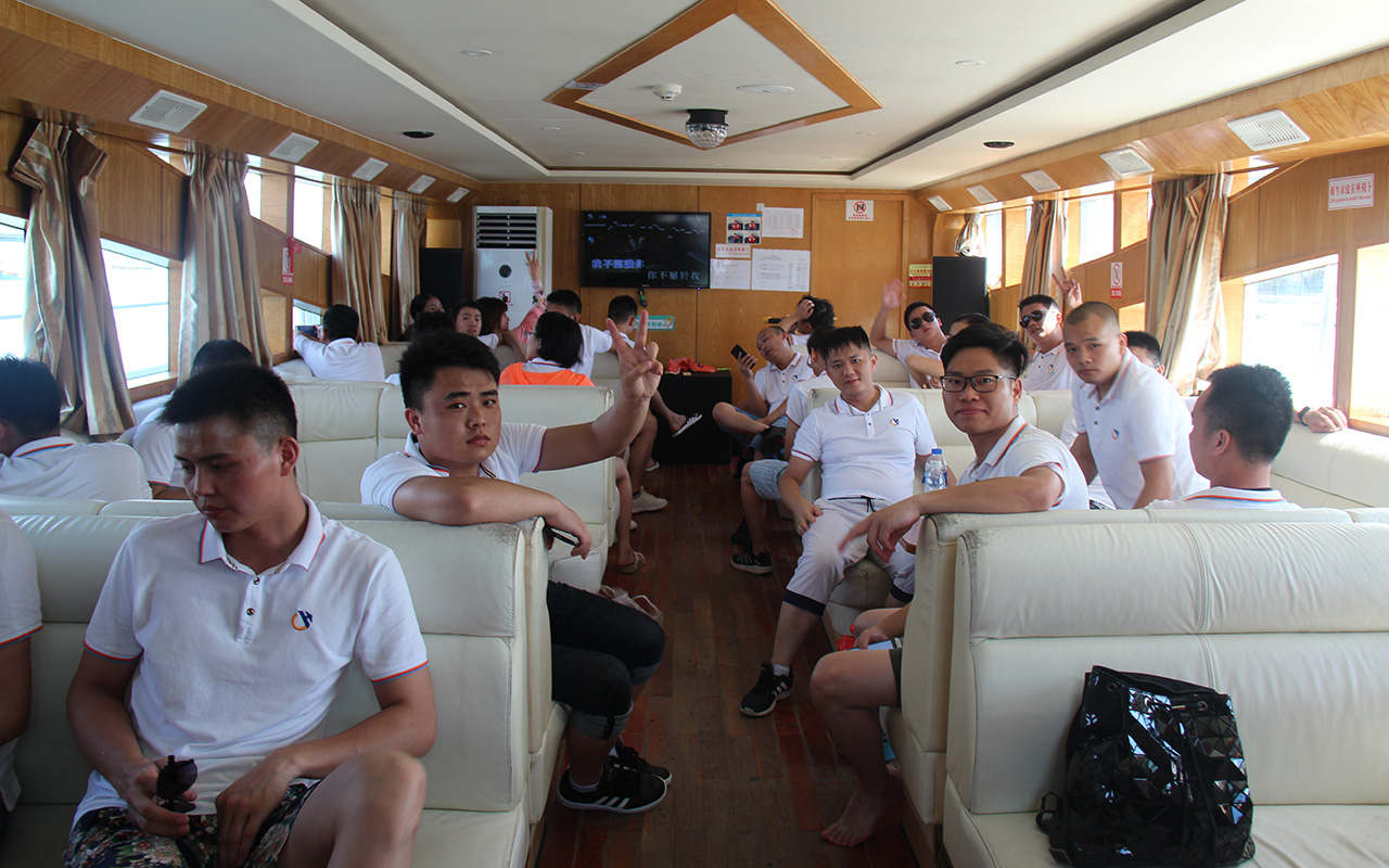 80分鐘的海上之行在一路歡聲笑語中度過,在盧導的帶領下,我們乘坐快艇來到了享有“中國的馬爾代夫”之美譽的三角洲島,三角洲島以“水清,石奇,沙幼”三絕著稱于南海。