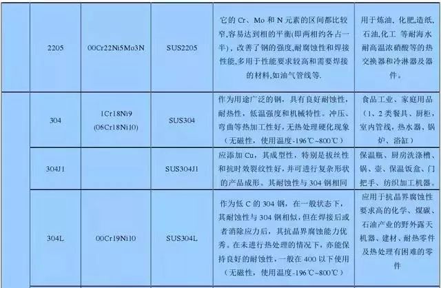 1、304不銹鋼。是應用量較大、使用范圍最廣的奧氏體不銹鋼之一,適用于制造深沖成型部件和輸酸管道、容器、結構件、各類儀表本體等,也可以制造無磁、低溫設備和部件。